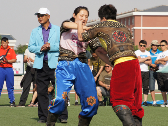 我校派出由照日格图副校长任团长,体育学院包呼格吉乐图副院长任领队、孟和宝力格老师任教练和16名运动员组成的搏克代表队参赛,经过两天的比赛,最终获得男子团体、女子团体冠军和女子个人冠、亚军。孟和宝力格获“优秀教练员”称号,扎拉玛和乌云高娃分获“优秀运动员”称号。