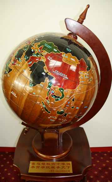本网讯(文/图 陈永红)在学校60周年校庆即将到来在际,2008级社会体育班全体学生在李凤新教授的带领下向学院赠送地球仪,表达对母校的感恩之情和祝福,期望体院的明天会更好。 地球仪高度约1.50米,宽度约0.70米,上书“喜庆母校60华诞恭贺学院桃李天下”。